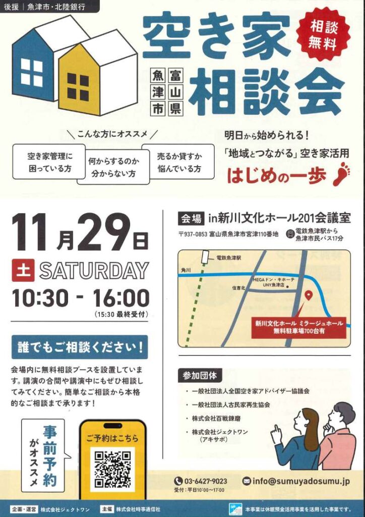 空き家に関する相談会が開催されます(魚津市後援事業)。